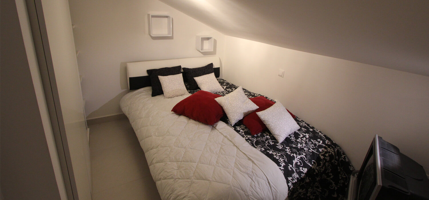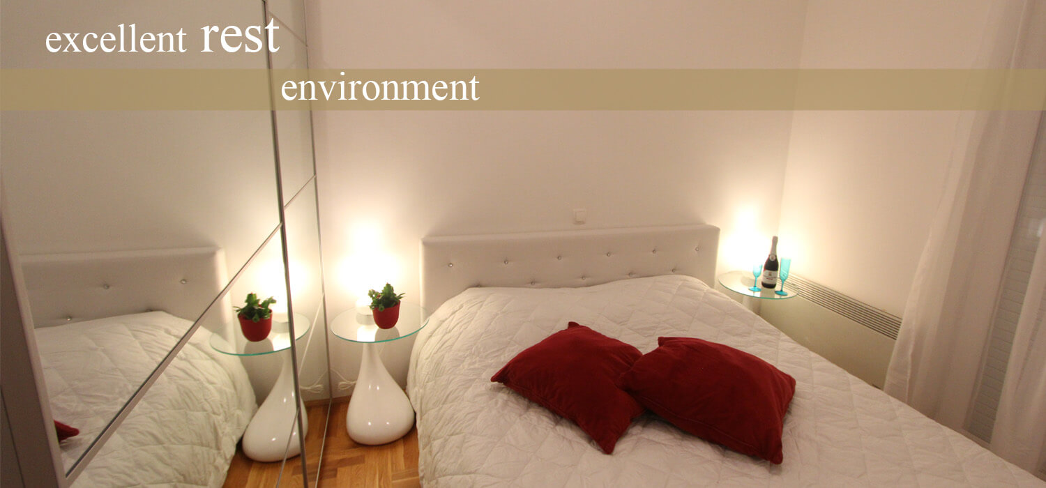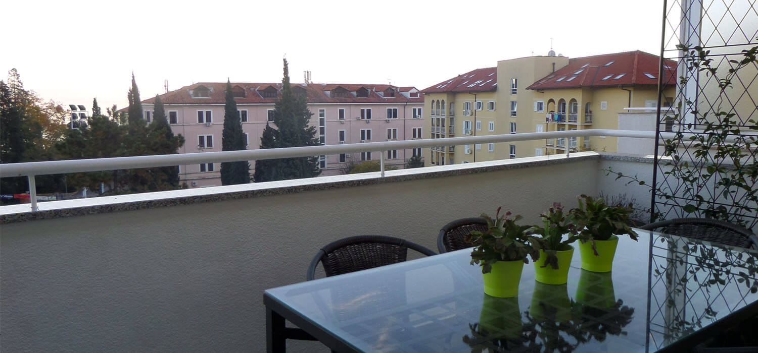 Die Wohnung ist doppelgeschossig mit zwei geräumigen Balkons. Die Fläche ist 90 qm. Diese besteht aus Diele, zwei Schlafzimmern (Masterraum mit geräumigen Balkon), Badzimmern (mit Badewanne), Gäste-WC, offenen Wohnraum und Galerie mit Schlafzimmer und Badezimmer (mit Duschbad) die auch als Arbeitszimmer benützt werden kann, weil diese so ausgestattet ist. Die Küche, das Esszimmer und Wohnraum bilden ein einzigartiges Ganzes. Dieses ist spitzenmässig ausgestattet und eingerichtet mit ausgesprochenen Design der den Spitzenstandard befriedigt. Die luxuriös eingerichtete Küche enthält alle Teile für Bedürfnisse und Gewohnheiten eines modernen Menschen: die Kücheninsel ist beleuchtet und ist mit entsprechenden Barstühlen ausgestattet, großer Kühlschrank mit Kühltruhe, Herd ausgestattet mit einer Glas-Keramikplatte, Backofen, Spülbecken, Geschirrspülmaschine, Mikrowelle, Wasserkocher, Toster, Kaffeapparat, hochwertiges Geschirr zum Kochen und Essen. Der Essbereich in zentraler Lage, gehört zu dem Tisch und an diesem können gemütlich 6 Personen platziert werden um zu essen.